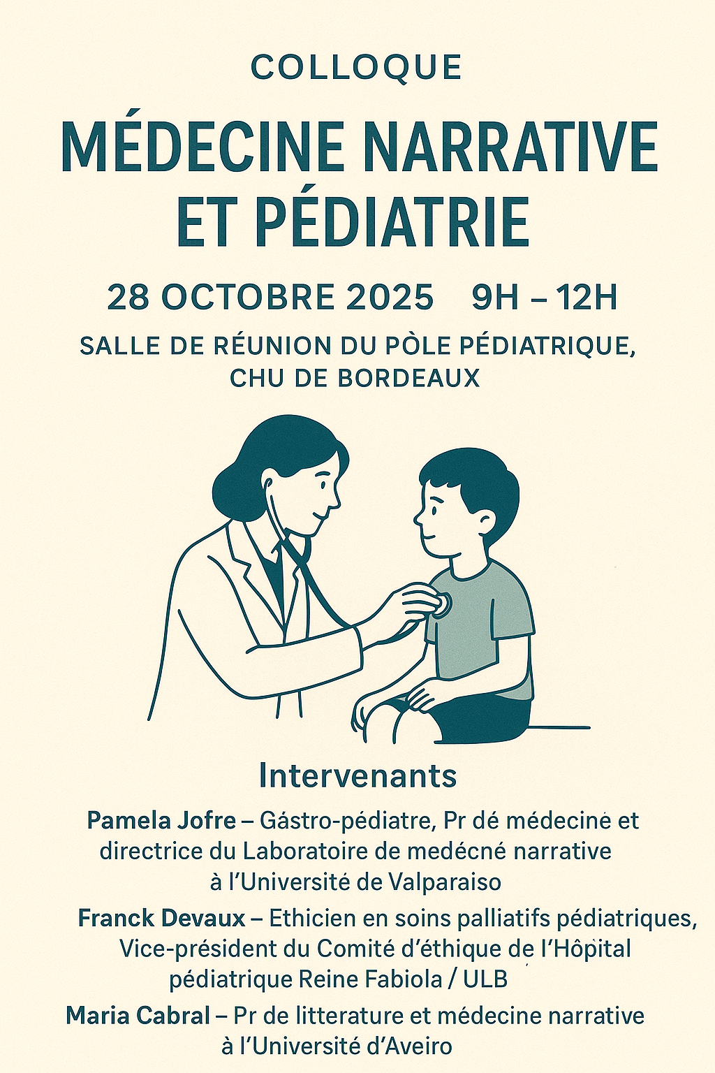 Invitada por la Universidad de Burdeos, la profesora Pamela Jofré participó a fines de octubre en el evento de medicina narrativa de pediatría, organizado por la Unidad de Pediatría del Hospital San Pellegrin y dicha universidad. La académica fue convocada por la Dra. Isabel Galichon, directora del proyecto de medicina narrativa en la Universidad, quien está a cargo del primer programa de formación de postgrado en Francia en dicha disciplina.