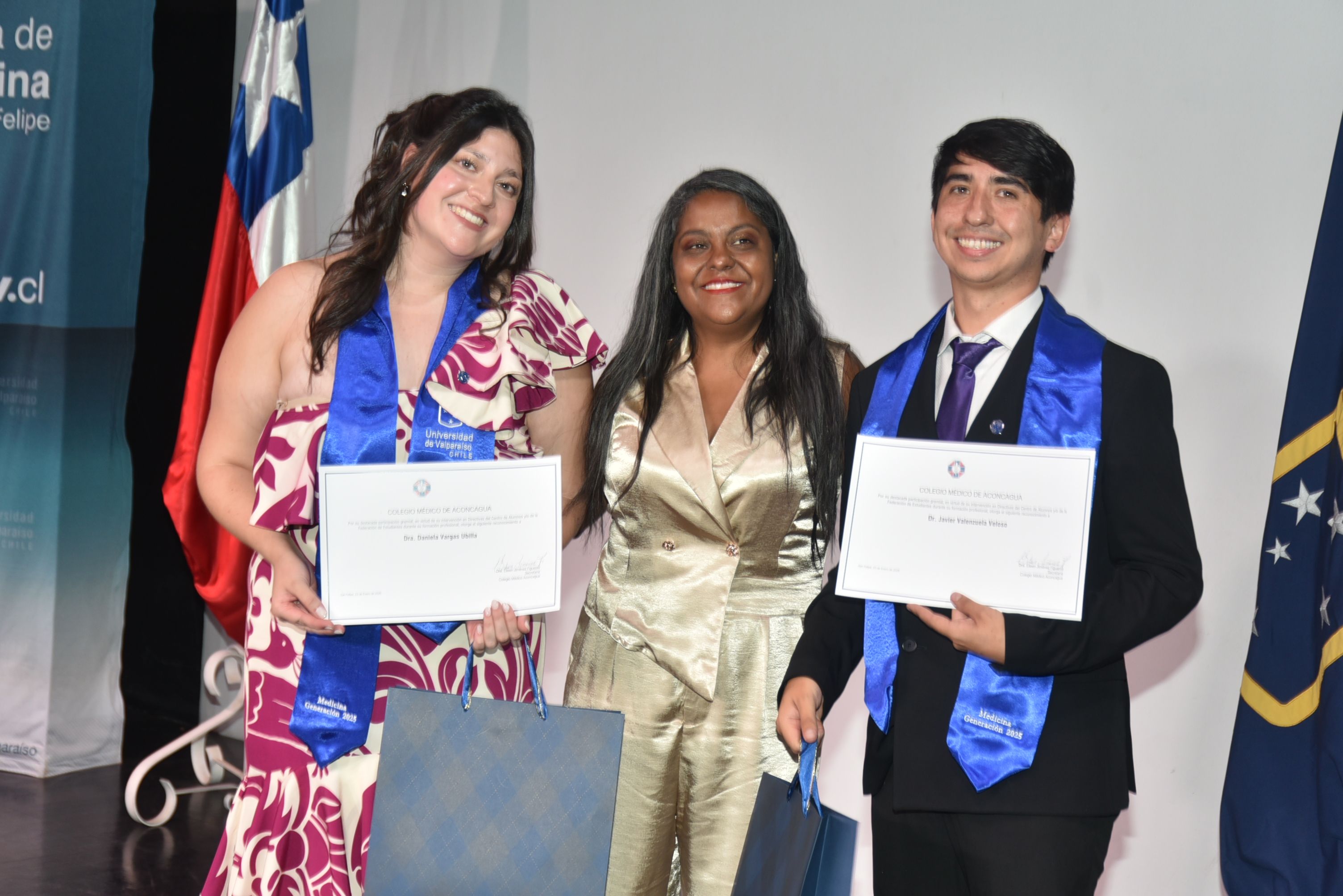 La ceremonia fue encabezada por el decano de Medicina, Dr. Antonio Orellana Tobar; el director de Escuela, Dr. Julio Riquelme Alcázar; y el jefe de carrera, Dr. René Martínez Barros, quienes fueron acompañados por la alcaldesa de San Felipe, Dra. Carmen Castillo Taucher, autoridades universitarias, de campos clínicos y del Colegio Médico Regional Aconcagua.