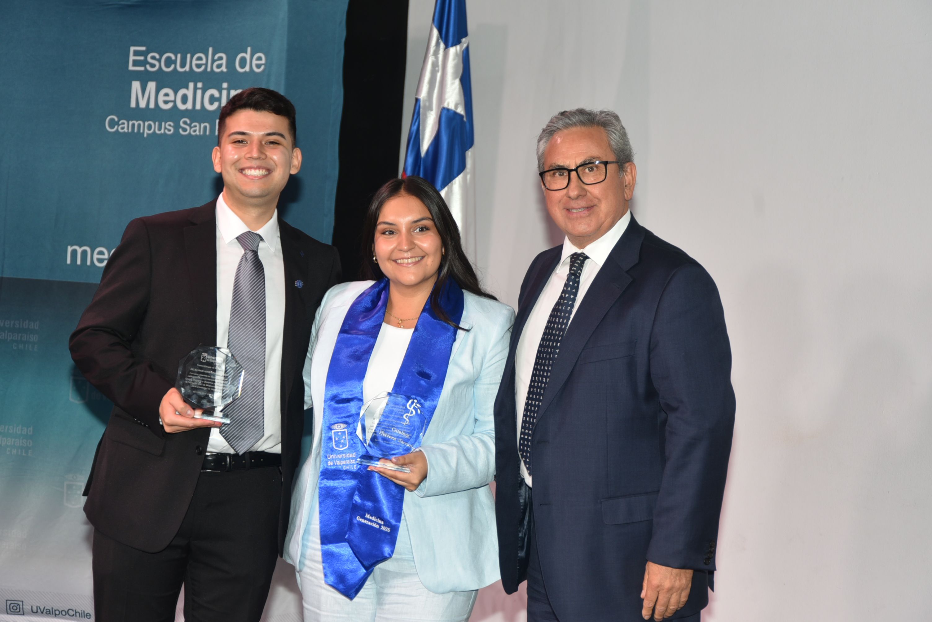 En los premios Internados Escuela de Medicina se reconoció en primer lugar a Agustín Muñoz Hinojosa; en segundo lugar, a Bayron Jorquera Gallardo y Catalina Herrera Jaccard; y en tercer lugar a Marco Hernández Marchant y Daniela Vargas Ubilla.