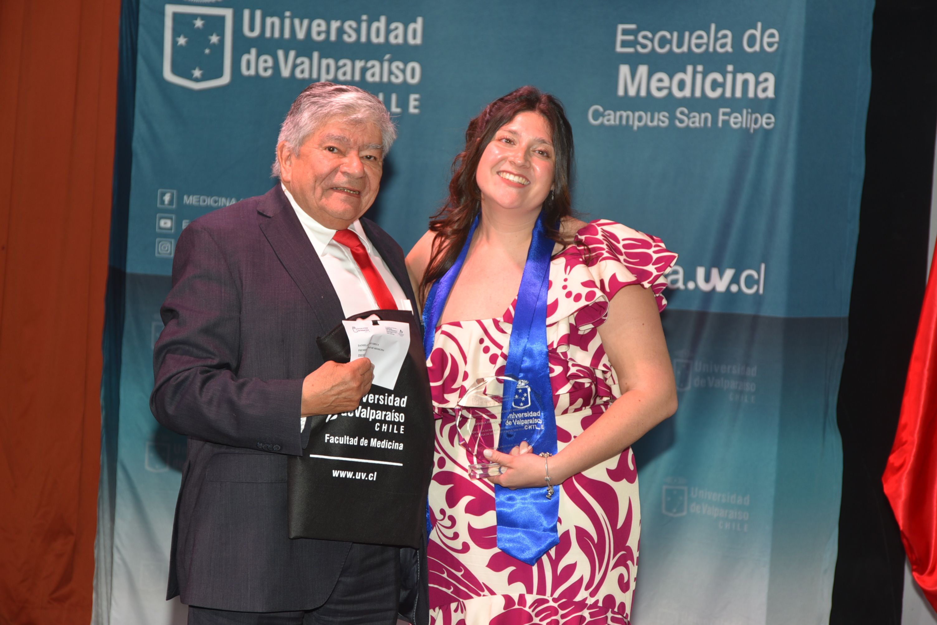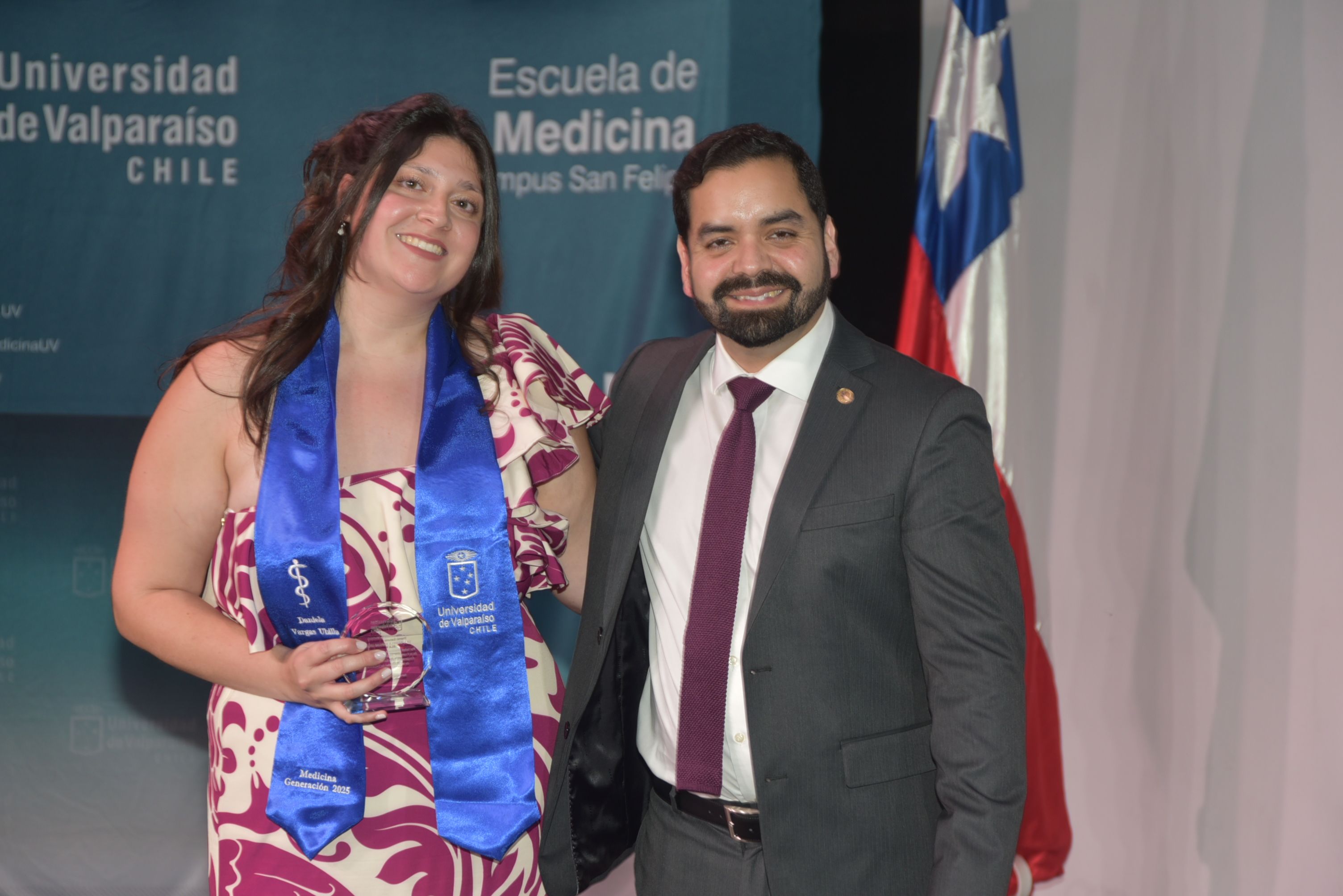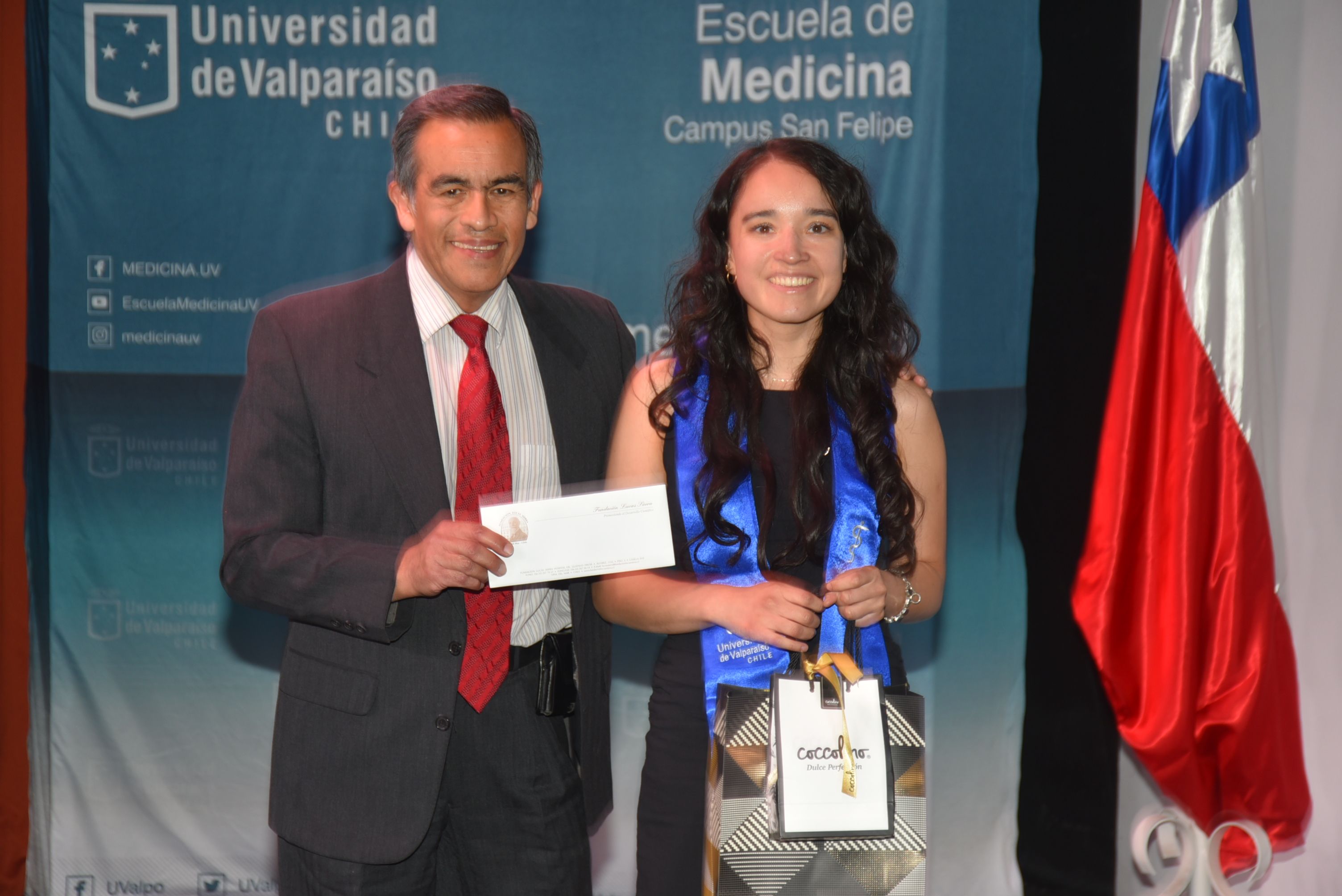 Como cada año se distinguió a las y los mejores estudiantes de la promoción. El premio Facultad de Medicina recayó en Daniela Vargas Ubilla. La titulada además recibió el primer lugar del Premio Escuela de Medicina, el Premio Colegio Médico junto a Javier Valenzuela Veloso y Premio de Investigación “Dr. Bruno Günther”.