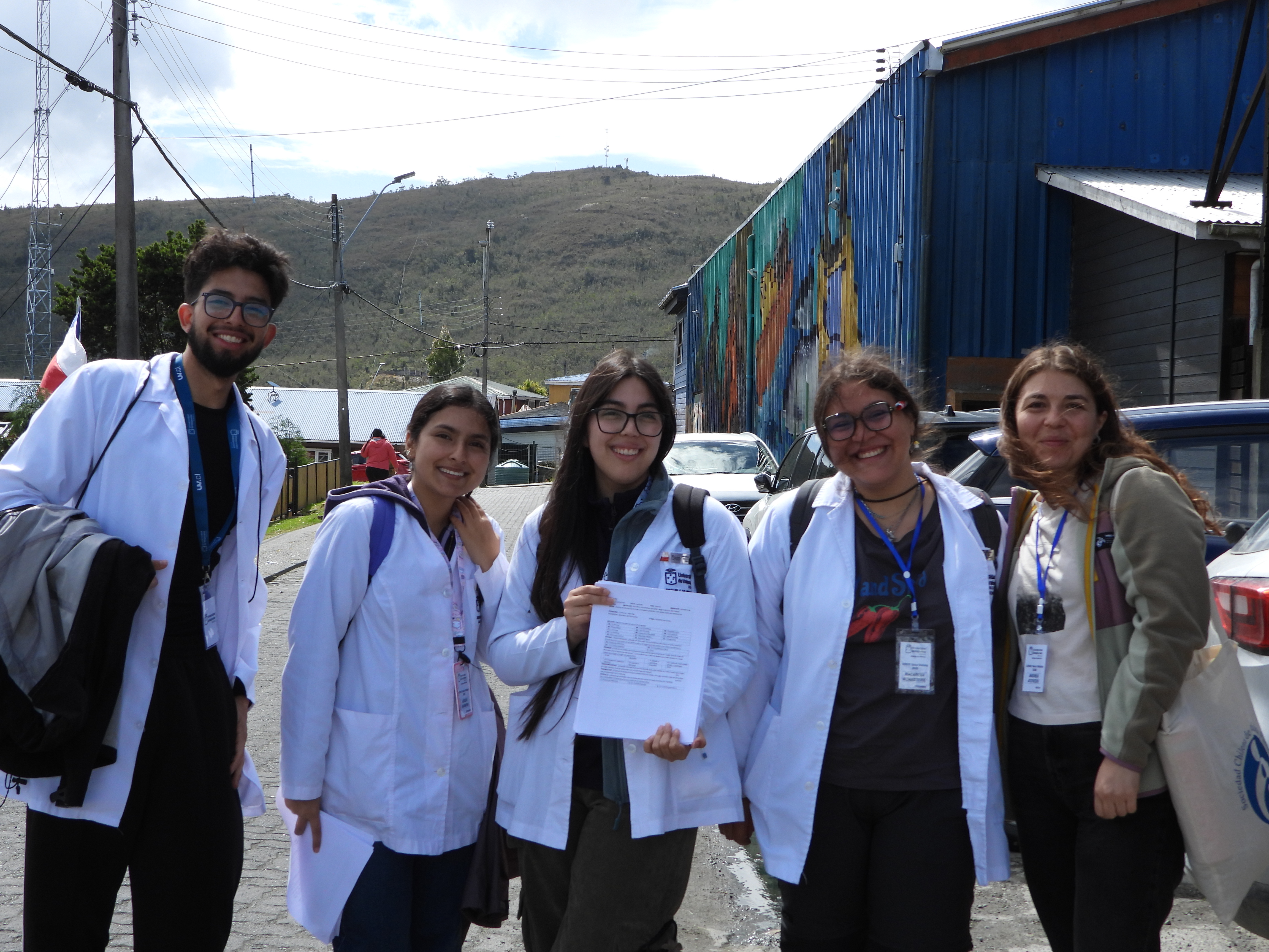 En el marco del trabajo que realizan en el curso “Investigación en salud comunitaria, diagnóstico de salud familiar en Melinka”, el grupo de estudiantes de Medicina UV integrado por María Victoria Calderón, interna de sexto año de la Sede San Felipe, y por Antonia Donoso, Monserrat Brizic y Natalia Rojas de cuarto año, junto a Angela Sabaj de quinto año de Casa Central, realizaron una charla vocacional para estudiantes de Melinka, ubicado en la comuna de las Guaitecas en la Región de Aysén.